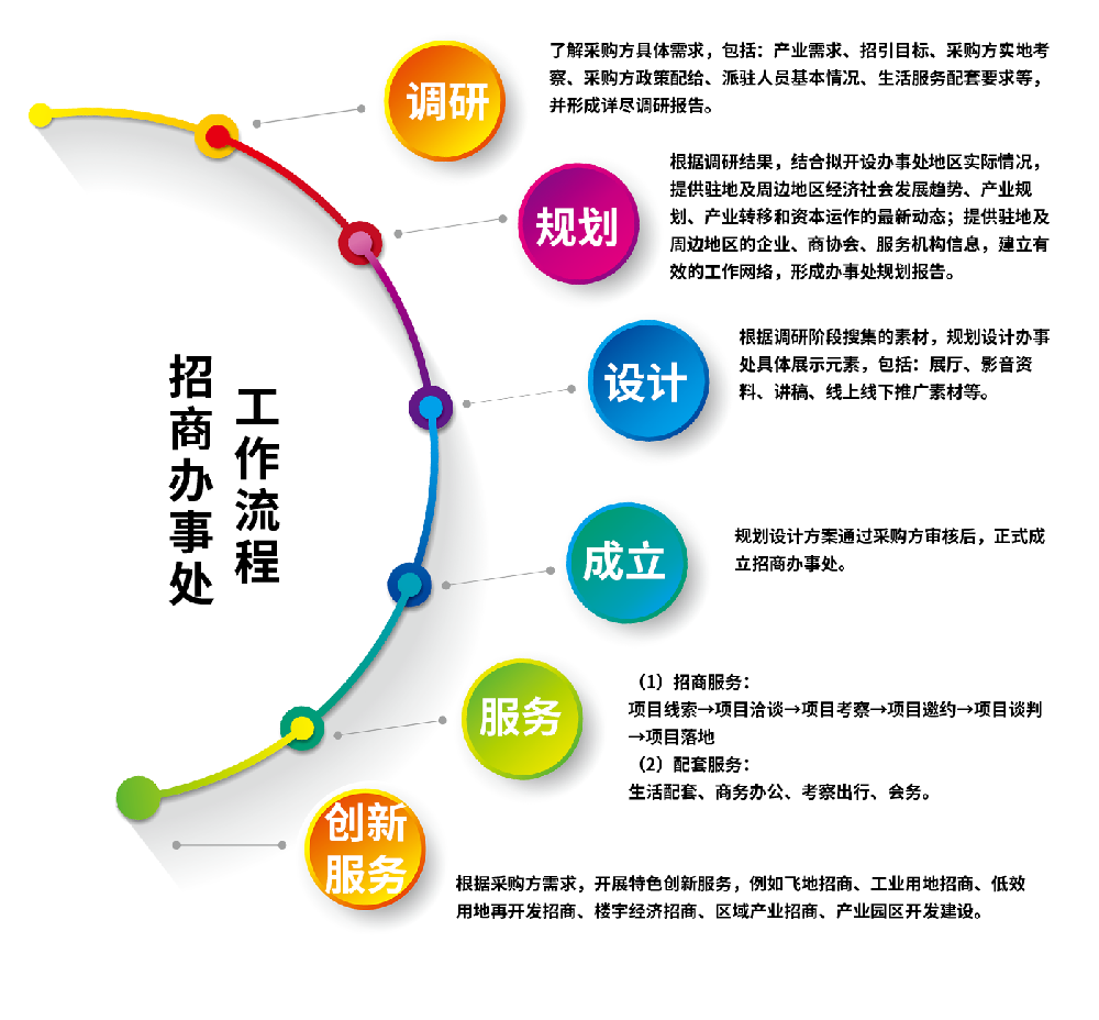 (一)項目洽談服務1、投資者向綠天使招商辦事處提供該項目的可行性研究報告或投資意向書(含項目名稱、投資意圖、投資金額及資金來源、用地、用電、用水及選址意向,環境影響情況,要求解決的問題等)和投資者背景資料(含投資主體、性質、注冊地及注冊者法定名稱、經營狀況資信情況及個人身份證明等),綠天使招商辦事處