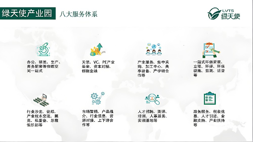 產業園區招商在產業園區的發展過程中,園區招商是關鍵環節,需符合區域發展的優質項目,才能更好地發揮產業集群效應為園區增強競爭,帶動當地經濟的發展。綠天使通過多年的積累形成一套高效的園區招商體系:一、產業鏈精準招商以龍頭企業為原點、以產業鏈分析為基礎,尋找
