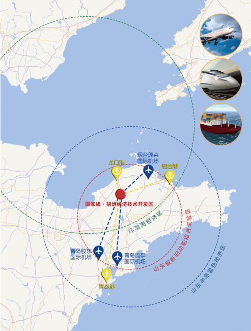 港口:距龍口港、煙臺港、青島港分別為30公里、110公里、140公里。