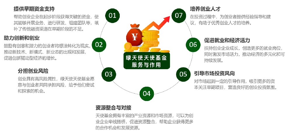 綠天使集團產(chǎn)業(yè)投資PART1產(chǎn)業(yè)基金綠天使天使基金綠天使天使基金專門投資于企業(yè)種子期、初創(chuàng)期,為萌生中的入園項目團隊或小型初創(chuàng)企業(yè)提供一次性的前期投資,?幫助企業(yè)在初創(chuàng)階段獲得必要的資金支持。綠天使?天使基金不僅提供資金,?還會參與到企業(yè)的管理中,?提供密切